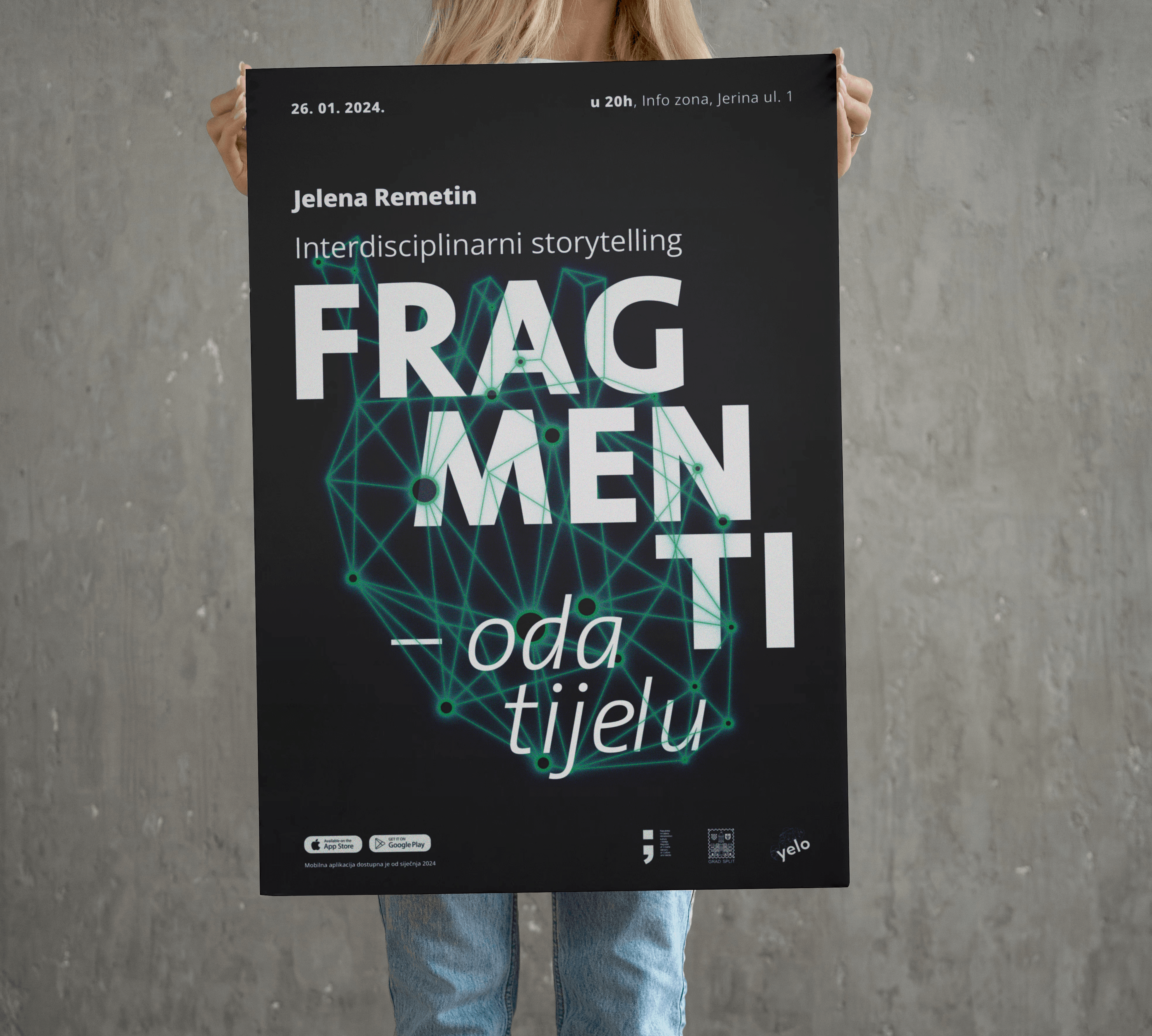 Fragments – Ode to the Body is a multidisciplinary art project by Jelena Remetin that explores themes of violence, healing, and the human body. Through a blend of movement, sound, scenography, and virtual tools, this is and immersive experience where the body becomes both the subject and the medium. Design and audio production carefully merge visual and sonic elements into a cohesive sensory experience.