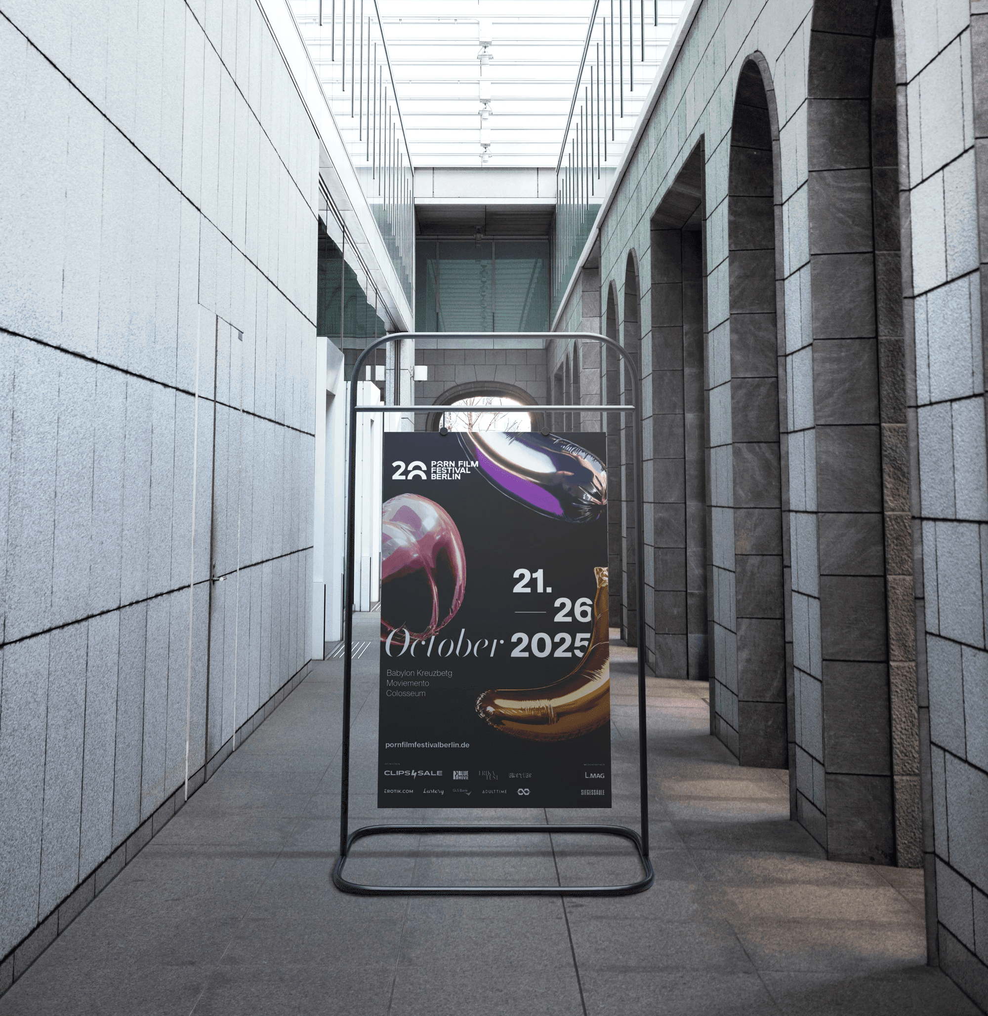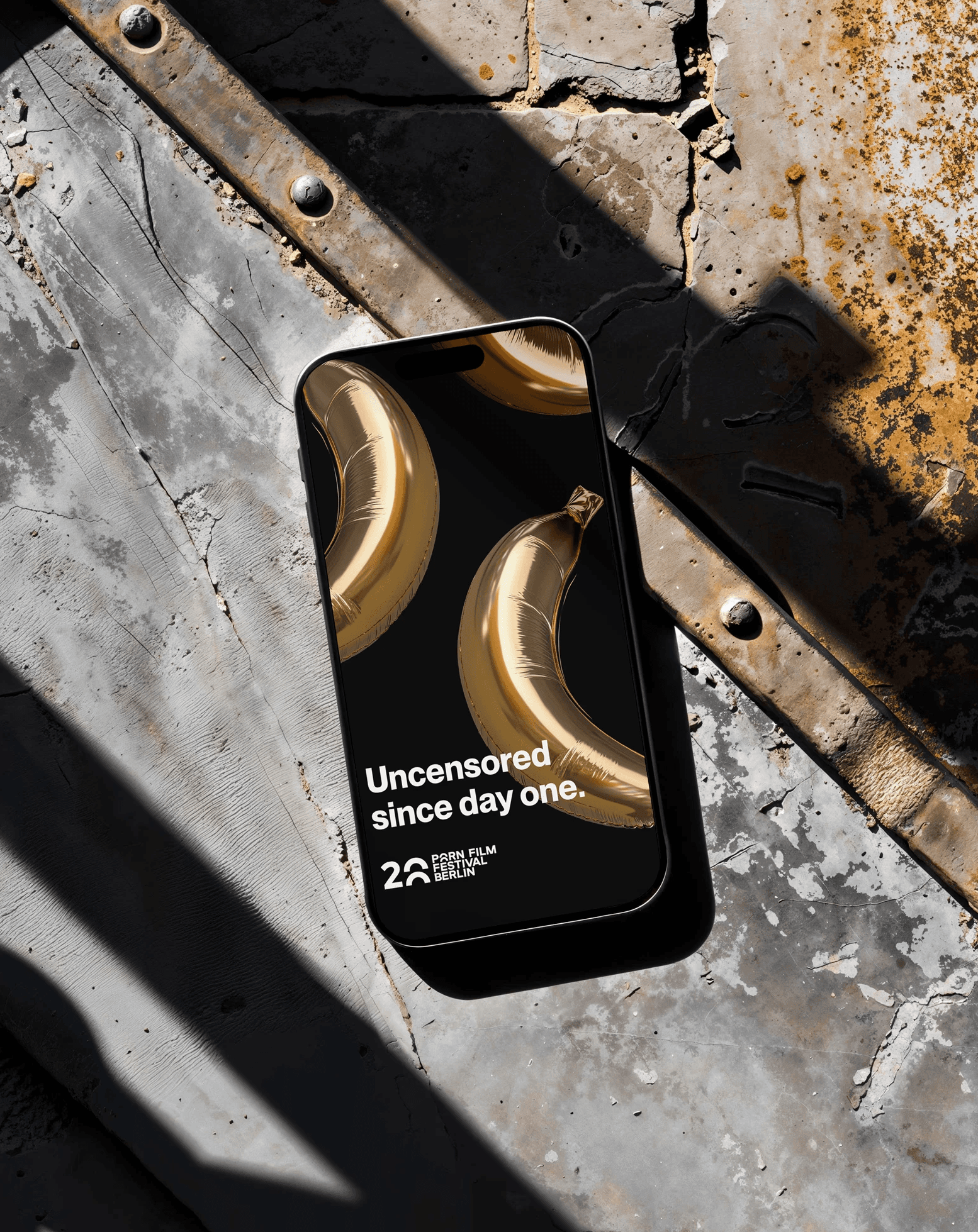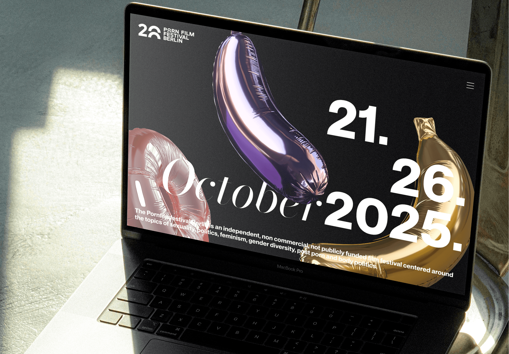 Founded in 2006, it is the first of its kind in Germany. PFFB celebrates queer culture, underground cinema, and body positivity. To reflect that energy, for its 20th anniversary, rebranding was conceptualised to capture both the rebellious spirit of the oldest porn festival in Europe and the sophistication of its legacy by exploring imagery outside the standard box of stigmatic expectations tied to the adult industry. Glossy bananas, eggplants, cherries, rings: they carry just enough suggestion, but are Playful, surreal, and sculptural, inviting curiosity rather than cliché.